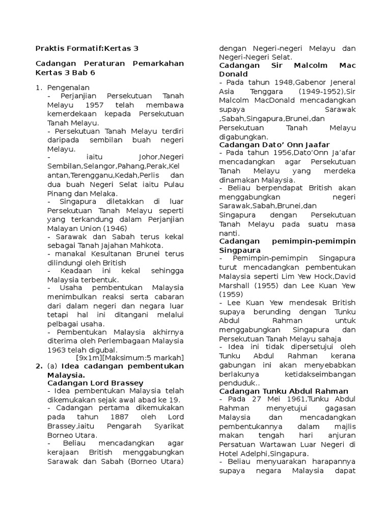 Bab 6 Pengukuhan Negara Dan Bangsa Malaysia Soalan. Skema Sejarah Kertas 3. 63 reaksi terhadap pembentukan malaysia.